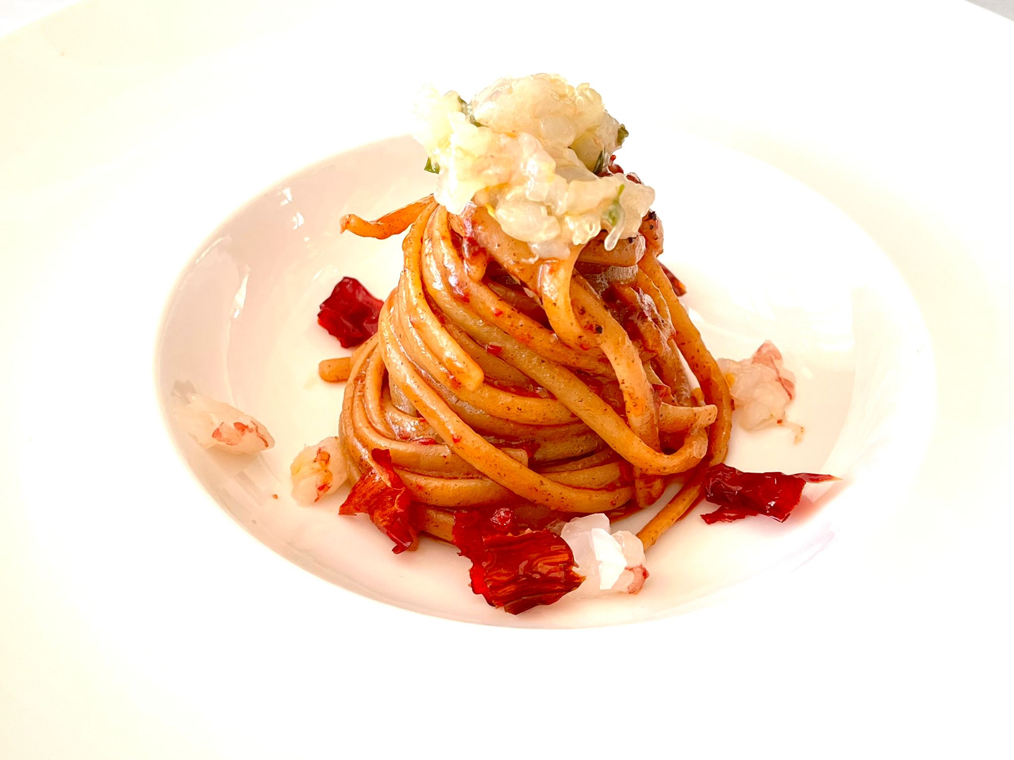Ieri l’ho trovato nel risotto realizzato da Vincenzo Manicone a Scuola. Lo chef novarese assai noto ed ex studente del Maggia lo ha usato in un suo magnifico risotto: Riso, Acciughe, Cappero ed Aglio e Nero. Ottimo. Ed ottimo sarà anche il piatto pensato dallo staff dell’Eta Palace Hotel di Vietri, Potenza, della famiglia Paterna. Il giovane Giovanni Paterna è stato nostro allievo e mi ha passato le foto del piatto e del fermentatore con cui elaborano l’aglio nero. Ah, dite? Sì il nome del piatto è Linguine Marulo, Peperone Crusco di Senise Igp, Aglio Nero e Scampo del Quarnaro Marinato al Limone Sfurzato di Sorrento. Anche questo è da provare!