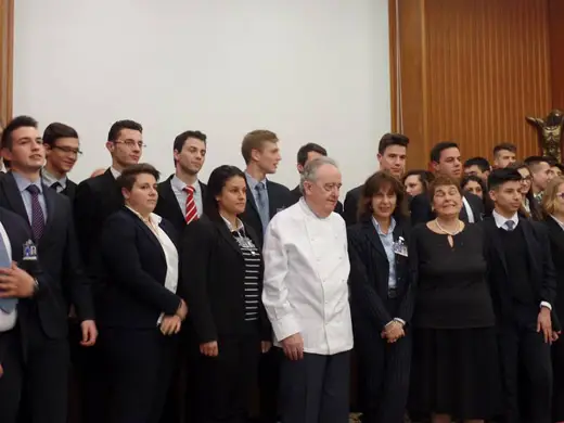 Non venne a tenere una lezione di tecnica o di carriera. Parlò invece di valori, di coerenza, di responsabilità. Disse agli studenti — e a noi docenti — che cucinare non è un mestiere come gli altri, ma un atto etico, una missione quotidiana. Quelle parole, pronunciate con voce paterna, avevano un tono quasi evangelico, ma in senso laico: non predicava una fede, ma una visione del mondo.