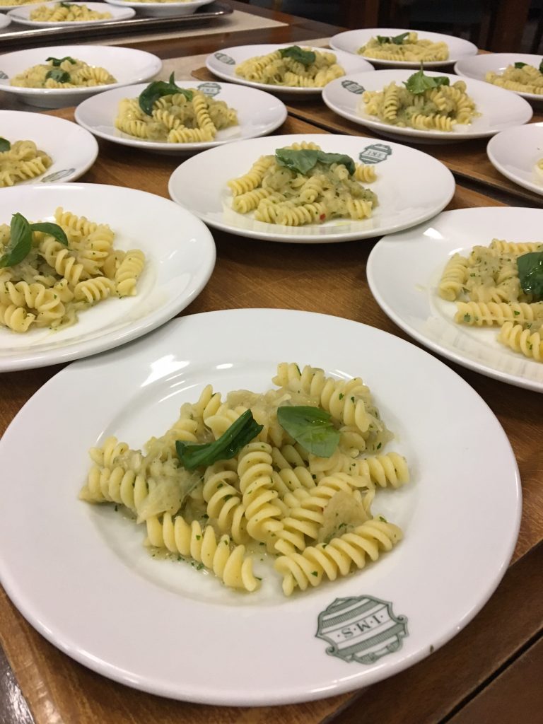 Fanno bene agli studenti delle lezioni così, in cui due grandi della cucina italiana si rivolgono loro con semplicità, con competenza, dettando dei suggerimenti e non delle regole, spiegando però… Aimo e Nadia Moroni hanno cominciato facendo assaggiare agli studenti uno dei loro piatti simbolo: gli Spaghetti di Grano Cavalieri al Cipollotto e Peperoncino, per poi passare a raccontarsi a raccontare. Loro che hanno fondato uno dei ristoranti – tempio della cucina italiana, Il Luogo di Aimo e Nadia, oggi nelle mani della figlia Stefania e degli chef Alessandro Negrini e Fabio Pisani. Aimo si è detto subito a favore della cucina italiana: “ben venga la grande cucina di altri Paesi (la grande cucina, però!), ben venga lo street food, ma non dobbiamo dimenticare la nostra cultura gastronomica. Oggi a Milano è più facile trovare un ristorante che prepara sushi piuttosto che uno che cucini un buon risotto alla milanese. Ed è un vero peccato perdere le nostre radici. Perché la cucina è cultura, storia e civiltà”. E non si può che essere d’accordo con lui.