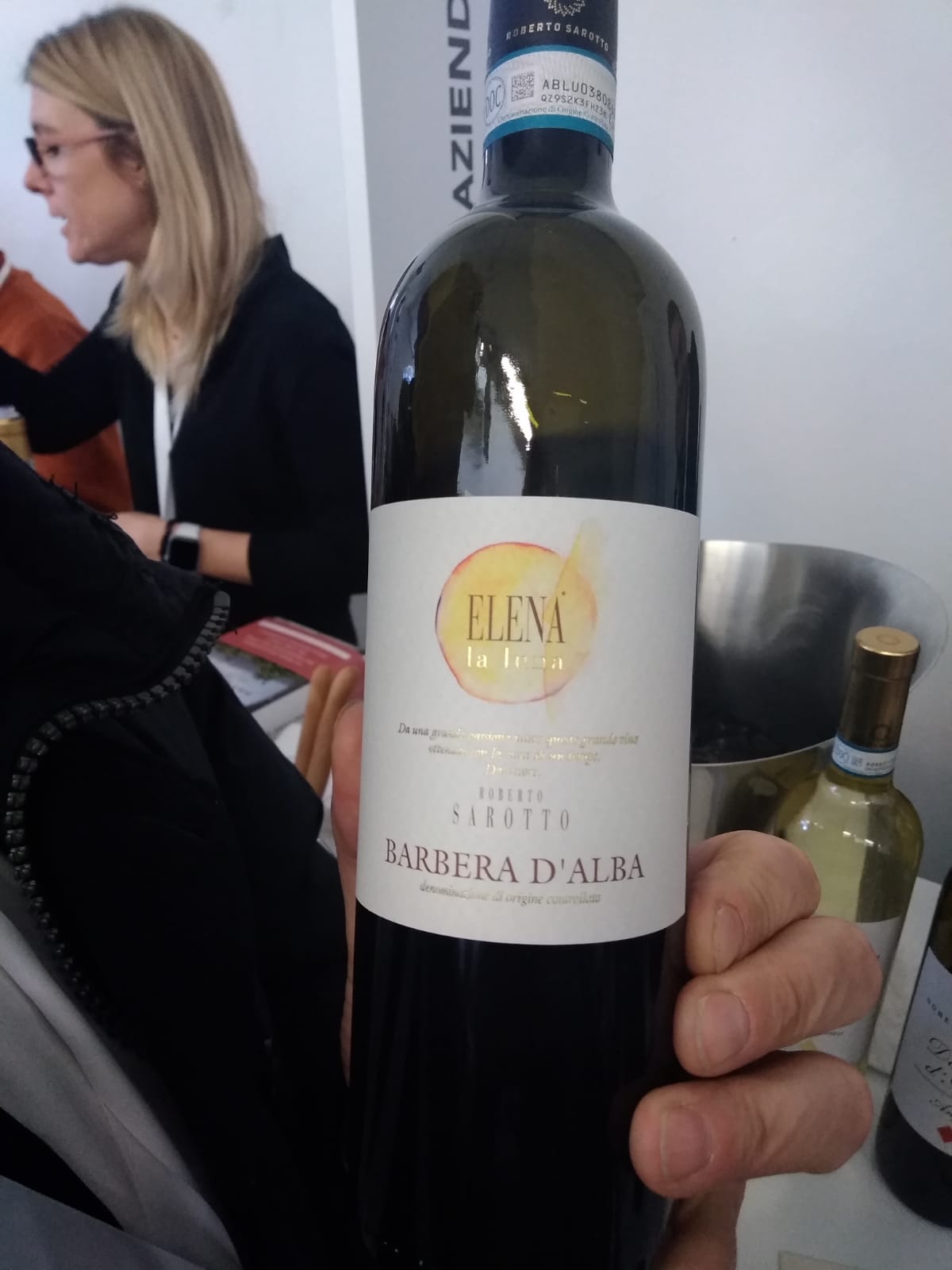 Davvero potente il Barbera d’Alba doc Elena di Roberto Sarotto, azienda “in Neviglie” come si legge sul depliant. Si tratta di un vino ottenuto con un “ripasso” di uve surmature o passite in percentuale variabile. Duque un barbera potente, corposo, alcolico… da “meditazione” viene da dire. Noi, io e Carmine, lo abbiamo assaggiato ad Alba, a Grandi Langhe, e ci ha davvero colpito. Ma berlo poi, magari a tavola, questa è un’altra cosa. Con cosa si abbina infatti? Come se esce dopo una cena con amici? Non so, ma lo consiglio comunque. Certo per un assaggio più che per una bevuta…