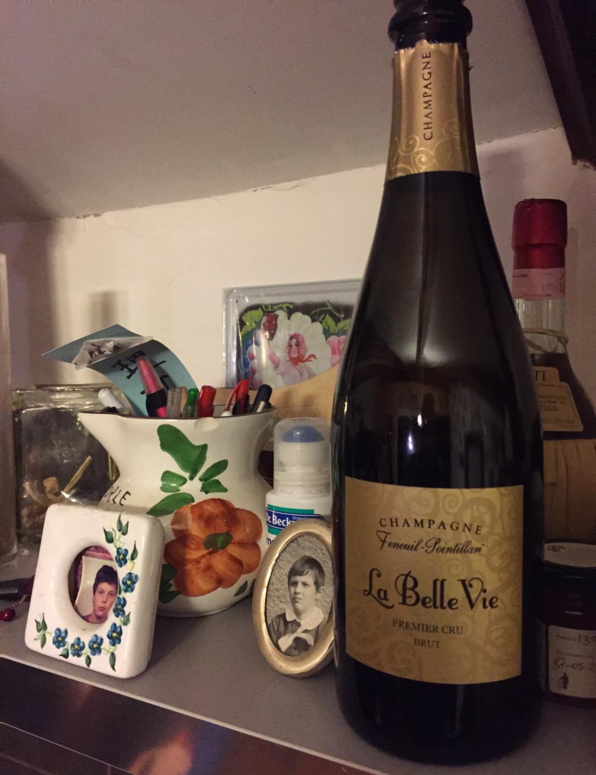 Sono sotto le coltri del letto e non mi decido se continuare a dormire o svegliarmi. Sono nel mondo di mezzo e penso a quella ragazza che conobbi sul lungomare: mi sorrise e due chiacchiere che non ricordo. Avrei dovuto insistere, non lasciarla andare. Non l’ho mai più incontrata. Ma nel tempo ho vissuto con lei molti momenti d’amore, con facce, voci e corpi diversi… un ciclo amoroso vago ed indefinito come questo momento fra il sonno e la veglia. Ricordo anche quella sera in cui lei venne a trovarmi portando con sé una bottiglia di champagne La Belle Vie che bevemmo penetrando nella notte, bicchiere dopo bicchiere. Il liquido dorato ci pervase e alla fine mi ritrovai nel letto, solo. Senza ricordi chiari, ma incrostato come una pietra di lago. Ora mi sveglio!