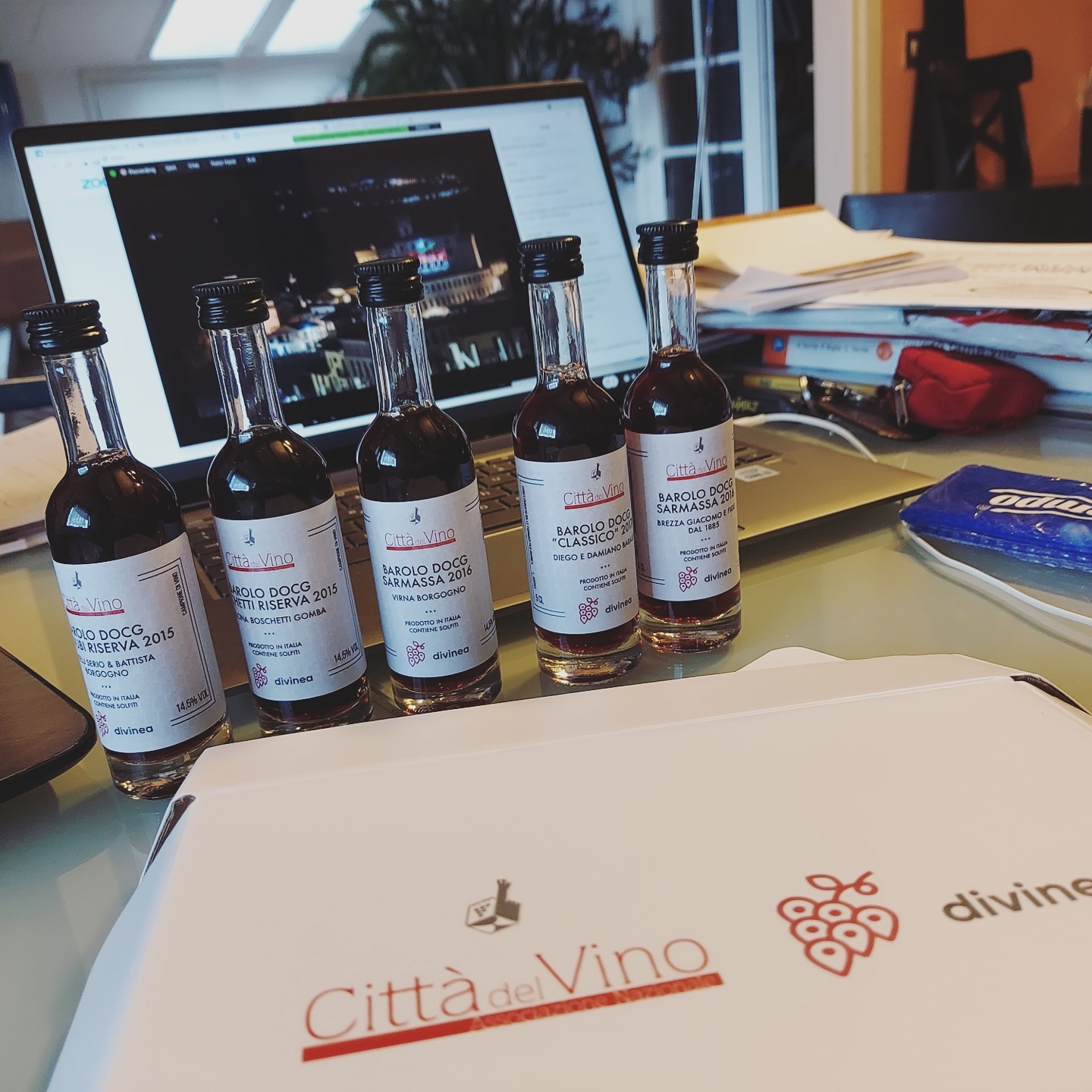 Sto facendo molte degustazioni on line, complice le chiusure e anche un po’ lo stile di vita acquisito in epoca covid. Come funzionano? Ci sono società specializzate che ti forniscono in breve tempo bottigliette da 0,20 o 0,25 cl e poi ti colleghi e segui in chat la degustazione e puoi fare domande. Bello, interessante. “Conosci” anche molte persone, conosci territori, assaggi vini, fai progetti di viaggio e d’acquisto. Non sono mai momenti troppo formali e mi è capitato anche di seguire la chat, mentre ero a tavola con (pochi) amici che discutevano con me ed io riportavo sui vini assaggiati. Poi ci sono degustazioni organizzate da singole cantine, più generose (non foss’altro che costerebbe loro molto di più travasare ed etichettare in bottigliette), che ti spediscono ad una cifra analoga (si va dai 35 ai 50 euro, spedizione compresa, per intenderci) un set di bottiglie, tre o quattro, gadget e materiali vari. In questo caso, più vino permette di coinvolgere anche altre persone (tipo a tavola come dicevo sopra) e di assaggiare i vini anche in un secondo momento. Che per i rossi soprattutto non è male. Infine, ci sono anche degustazioni in diretta FB a cui puoi interagire solo sulla chat. Sono gratis, e se vuoi puoi comprarti il vino, per accompagnare. Belle anche queste. Ti devi iscrivere, essere puntuale; oppure vederti la registrazione, ma niente chat in questo caso. Ultime cose provate: la diretta zoom con un produttore o più produttori che presentavano i vini e tu potevi fare domande. Bella anche questa idea.