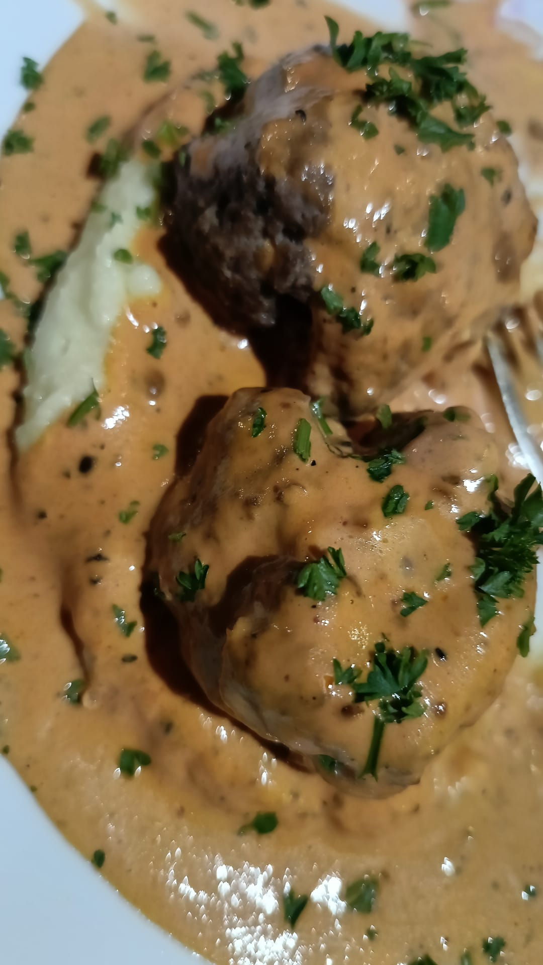 Una sera un gruppo di colleghi di Belluno, che alloggiava nel nostro stesso hotel in centro a Helsinki (Holiday Inn Helsinki), ci ha suggerito di provare una sorta di pub, un locale decisamente informale, di quelli che piacciono a me, con una moto d’epoca all’entrata, un juke box anni ’70 con i dischi degli ABBA, musica e un’ottima cucina. Ci siamo stati due volte: la prima per gustare le mitiche polpette di carne finlandesi, enormi, grandi come canederli, gustose, piccantine, dove la cannella e lo zenzero si mescolano alla salsa di pomodoro creando una vera delizia.