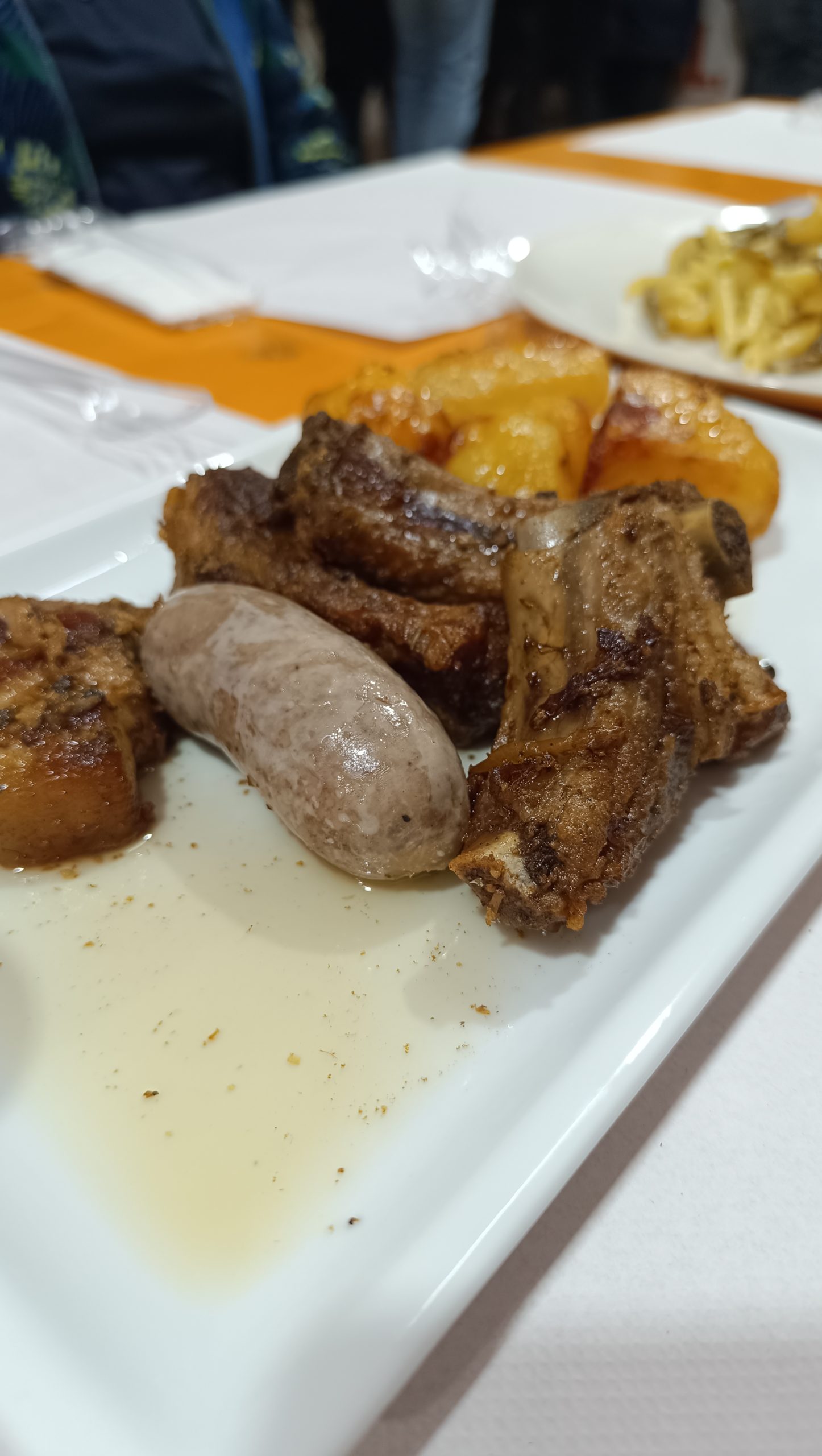 Dopo pochi bocconi, scatta il riconoscimento. Non è la prima volta che incontro qualcosa del genere. La cassoeula, certo. Ma anche la potée, la choucroute, fino al bigos. Schema ricorrente: base vegetale resistente (qui patate, altrove cavolo), carne di maiale e lunga cottura. La cuchela è la versione ossolana di questa grande famiglia europea (e forse mondiale ma io non conosco).