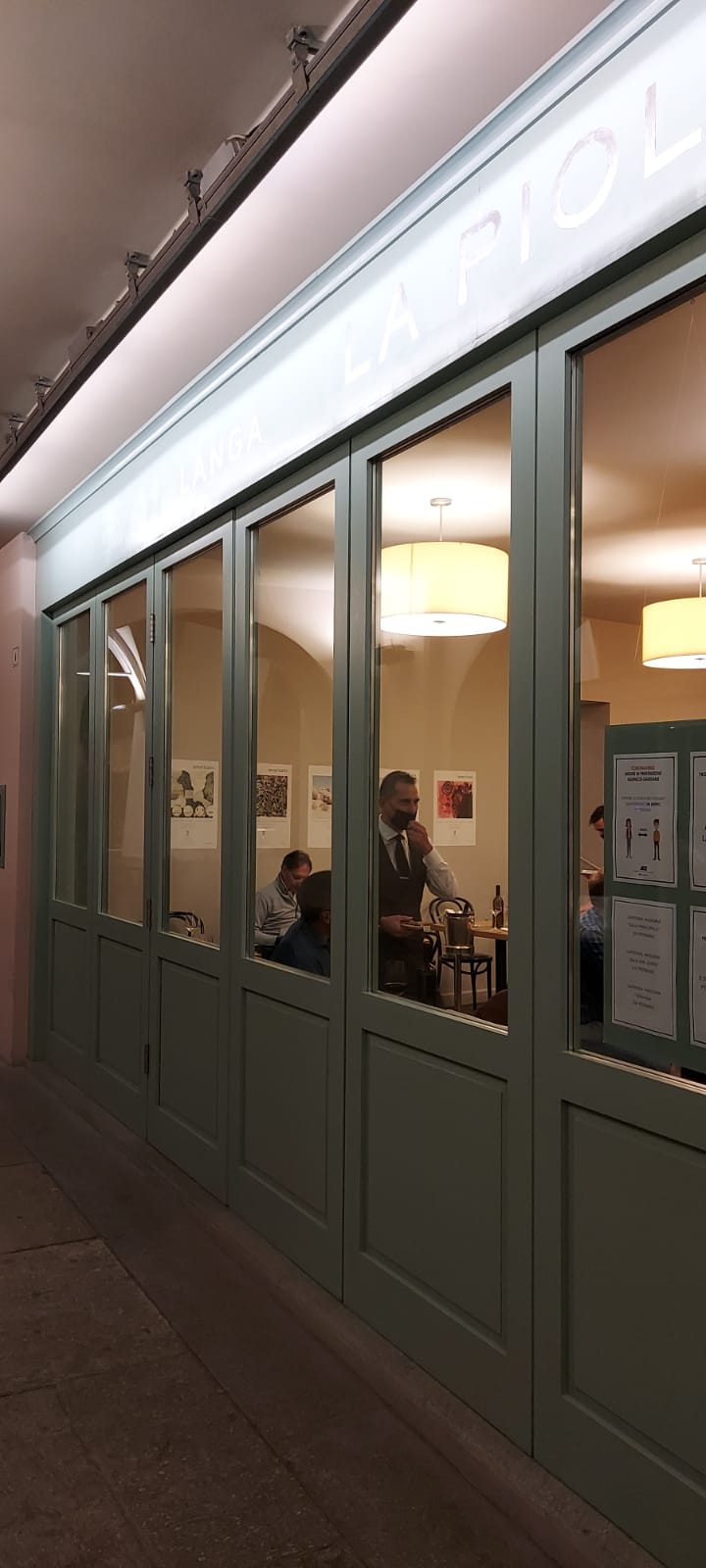 Una sera di qualche giorno fa ad Alba, per fare un favore ad un amico. Cena in un locale del centro che poi scopri essere il locale “pop” di un celeberrimo chef. Si chiama La Piola e si ispira appunto alla tradizionale piola piemontese, ma è altra cosa. Ha infatti un’eleganza minimalista ed è ricercato nei particolari, come i piatti d’artista (che puoi comprare) o il dehors originale di legno. I tavoli però sono piccoli, il tovagliato di carta e c’è grande viavai. Tanti stranieri. La cucina è quella tradizionale del sud-ovest del Piemonte, fatta bene e anche con proposte vegetariane. Ovviamente ampia la lista dei vini, al bicchiere e in bottiglia, da ristorante. Il servizio è gentile, informale ma fin troppo frettoloso. Accessibilità buona e wifi gratis. Si trova in pieno centro, in area pedonale. Davanti ha il Duomo e dietro l’omonimo, tristellato ristorante di cui è una dependance.