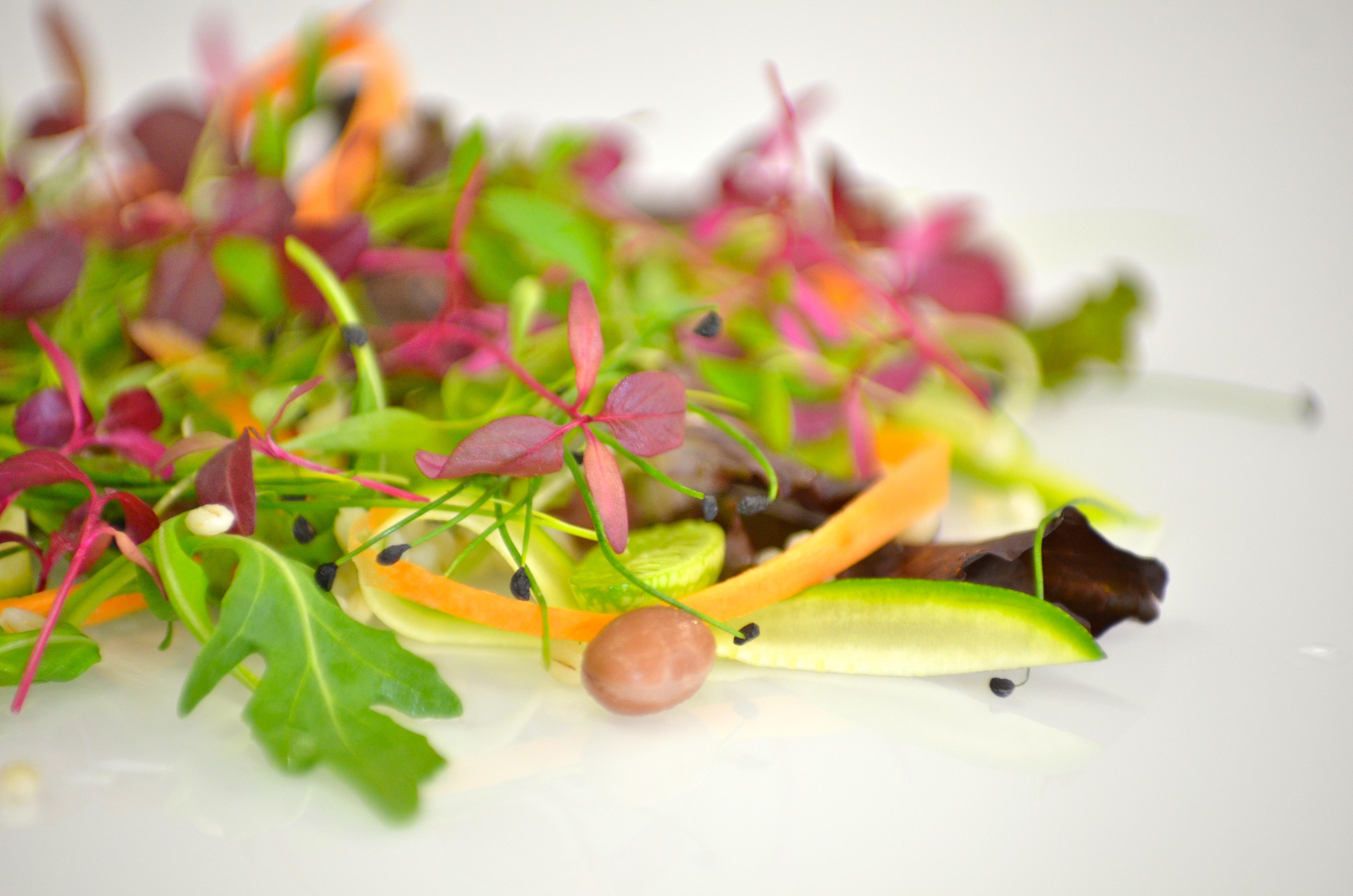 Insalata di misticanza con fagioli, orzo e verdure al vapore