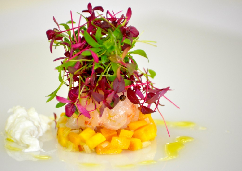 Tartare di gamberi rossi con cuore di burrata