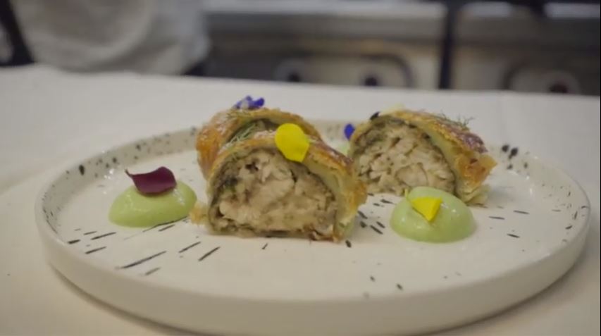 Realizzare un piatto utilizzando le tecniche della sfilettatura senza scarti, dell’affumicatura a caldo e a freddo, della spuma con sifone. Inoltre Matteo Piana spiega come fare una buona pasta sfoglia. Lo chef Matteo Piana continua con un secondo piatto a base di trota, Trota alla Wellington.