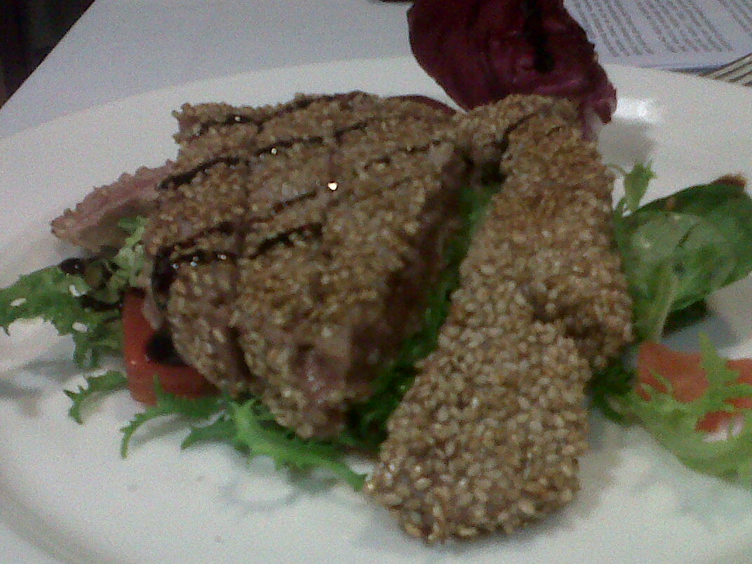 Peccato però che la mia vicina di sedia abbia avanzato un po’ della Tagliata di Tonno con sesamo ed aceto balsamico. Ciò mi ha fatto pensare a come i nostri comportamenti alimentari siano deleteri. Il tonno è un pesce in via di estinzione. Abbiamo imparato a mangiarlo ovunque e chiunque sull’onda della moda per la cucina giapponese. Ed ora si trova in ogni dove, compreso un ristorante borghese nella bassa vercellese. Sempre meno, però, nel mare. Ma La Bettola doveva proprio avere in carta il tonno? Dobbiamo proprio consumarlo così, senza grazia. Tanto da avanzarlo anche? Non so. A volte penso che ristoratori e cuochi dovrebbero porsi delle domande, interessarsi, prendere posizione. Altrimenti cosa sono: senz’anima? macchinette passa cibo? Boh!?