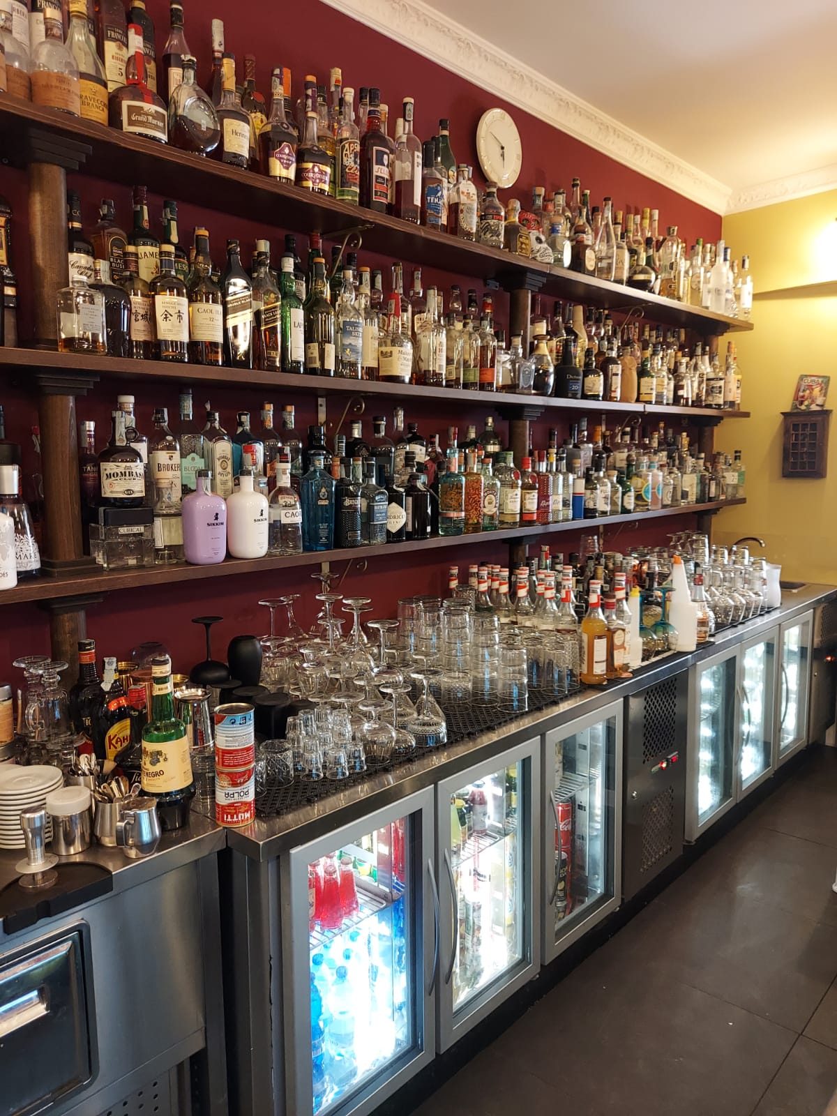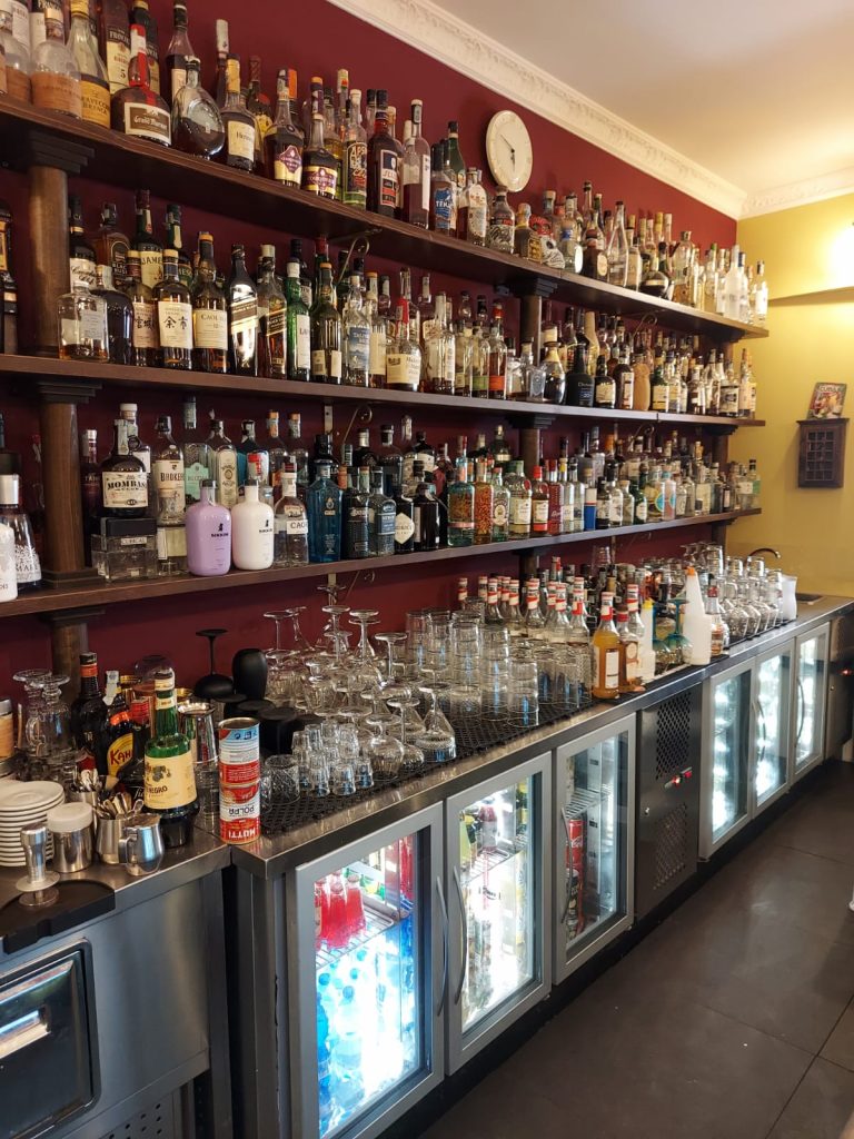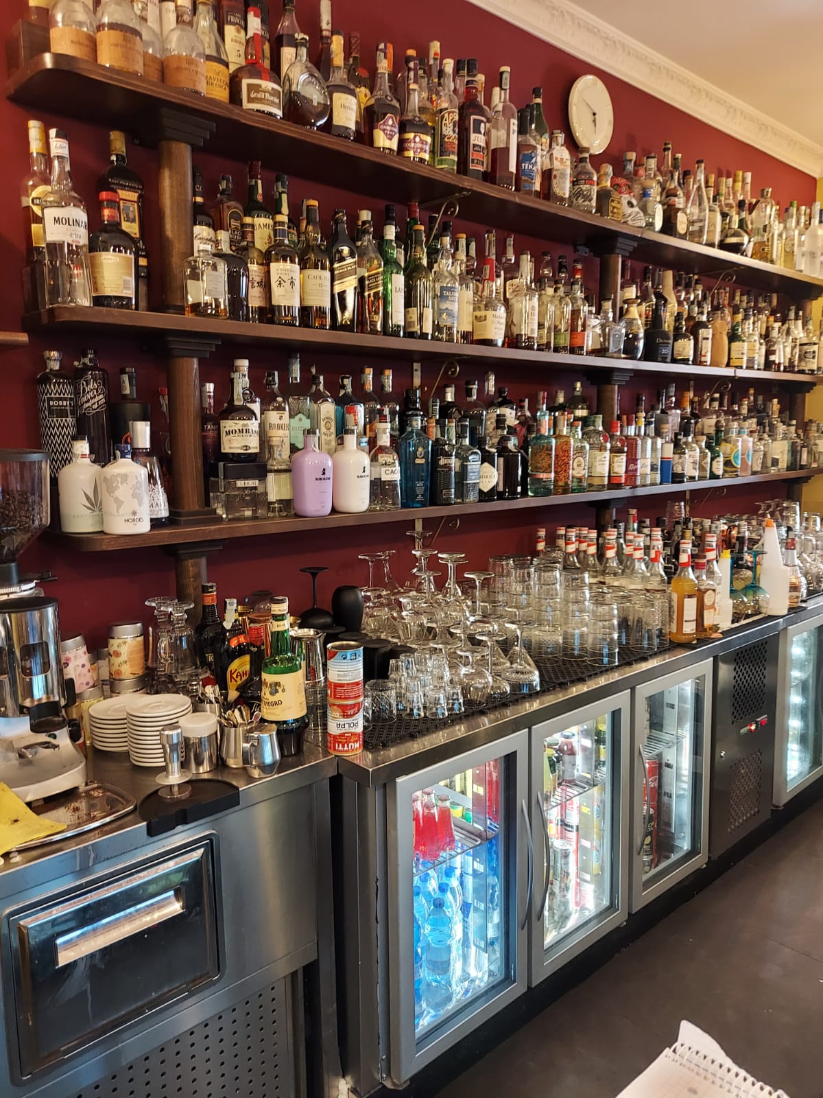 Luigi mi ha portato a bere un caffè in un nuovo bar di Omegna, sul Lago d’Orta. E quando sono andato a pagare, lo sguardo mi è caduto sulla bottiglieria: imponente, ricchissima… davvero molto per un paese di periferia, anche se un poco turistico (il Lago di più). O forse sono io che non so, che non immagino la passione per il bere miscelato. Forse sono io. Intanto ho goduto con semplice semplicità della bellezza di questa bottiglieria.