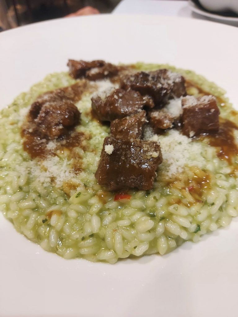 Una buona panissa vercellese la potete gustare a La Bettola di Carisio: un locale luminoso, dal look moderno e dal servizio piacevole e puntuale. Io se passo, ci vado. In primo luogo per la panissa tradizionale, un piatto unico direi. Poi anche perché è un ristorante piacevole e dalla buona cucina. Infatti mi son fatto tentare anche dalla degustazione di antipasti piemontesi. E prima ancora dall’aperitivo a Santhià, da Pasqua: pasticceria con uso bar e ristorazione che consiglio. Però non prima di una panissa: troppo!Com’era la panissa? Più leggera rispetto alla tradizionale, di solito più unta; il riso era croccante, come piace oggi; non troppo asciutta. Buona.