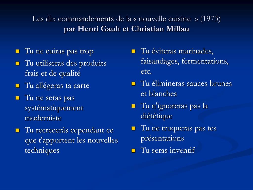 | 1973–1980 | Nouvelle Cuisine originaria | leggerezza, freschezza, creatività | Rivoluzione anti-tradizionale |