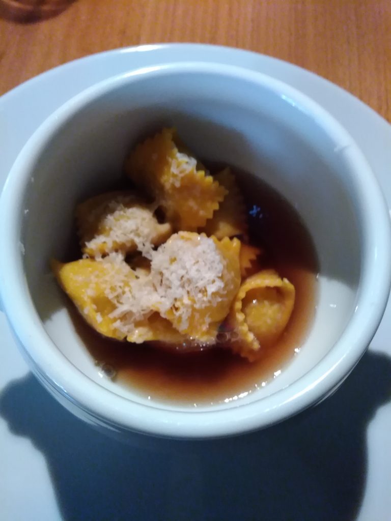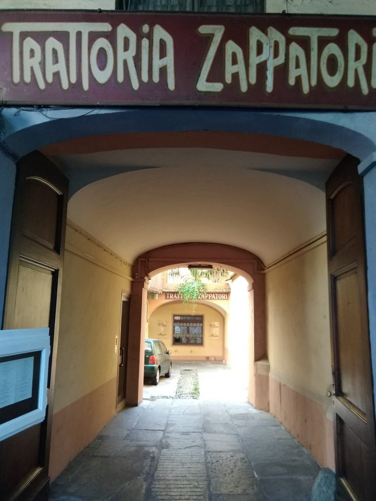 I più buoni ravioli in brodo di sempre li ho mangiati pochi giorni fa alla Trattoria Zappatori di Pinerolo. Non me ne abbia mia madre, che li fa ottimi -e averne e averne e averne-, e neppure la mia nonna Irma (ormai puro spirito) che pure buoni li faceva. Ma questi erano ottimissimi. Cotti in acqua, serviti in una fondina e poi ricoperti da un brodo riscaldato in un curioso bollitore di vetro e fatto impregnare del sentore dei funghi che attraversava in ebollizione. Stile moka express per capirci. Buonissimi: ravioli del plin dalla sfoglia sottile e dal ripieno delizioso e dal profumo di sottobosco. Da provare. Buono anche il resto, comunque, ma questi mi sono rimasti in testa. La Trattoria Zappatori è nel centro storico di Pinerolo, vicino all’area mercato. E’ facile da raggiungere e facile il parcheggio. Una volta era una trattoria in un sottoportico, oggi è un ristorante gourmet. Di quell’epoca mantiene le insegne storiche e un certo stile rustico, fuori e dentro, con mobili e oggetti di un tempo che si mescolano però ad un minimalismo modernissimo. A partire dal giardino giapponese all’esterno. Piatti, stoviglie, tovagliato sono ridotti al minimo, ma comunque originali e spesso unici; luci soffuse e musica ambient. Le proposte gastronomiche, però, sono rimaste quelle della tradizione piemontese, solo più ricercate, curate nei dettagli minimi, ottime. Quando sono andato io, la scelta era un po’ ristretta, più carne che pesce (di tradizione comunque, merluzzo per capirci), ma c’era un interessante menù degustazione. Lo chef opera in una cucina a vista ed è cordiale, ama parlare di sé e dei suoi trascorsi sportivi, familiari e professionali. Il servizio è professionale ma non freddo. Buona scelta di vini ed anche qualche birra artigianale. Da provare, se passate di là. Poi ditemi dei ravioli.