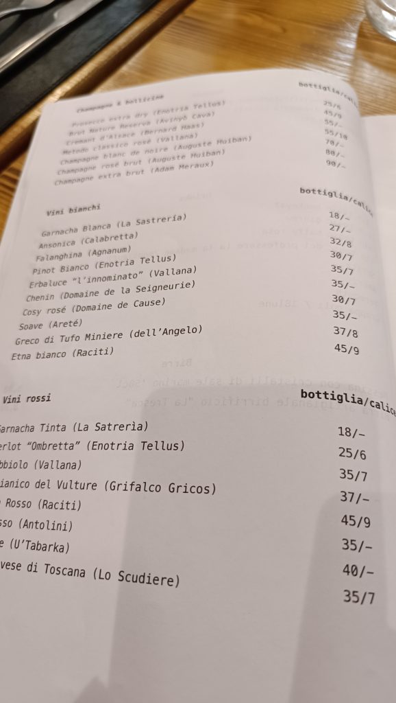 Pagato tanto? Sì e no. Il vino è ricaricato troppo, a mio giudizio; ma i piatti no. Difetti? Il minimalismo dell’apparecchiatura, se non piace; e i tempi di attesa: tutto è espresso o quasi e dunque è meglio decidere subito cosa mangiare e non fare come abbiamo fatto noi, una portata per volta. Tempi lunghi e tanto pane -buono- consumato nell’attesa.