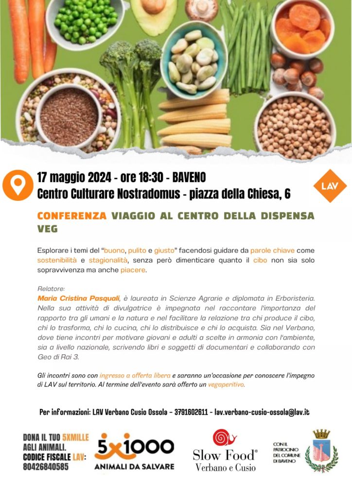 La Lega Italiana Antivivisezione (LAV) del VCO, in collaborazione con Slow Food Verbano e Cusio, con LAV nazionale e con il patrocinio del comune di Baveno, invita ad un incontro divulgativo nella serata di venerdì 17 maggio, alle 18,30, presso la sala Nost@domus.